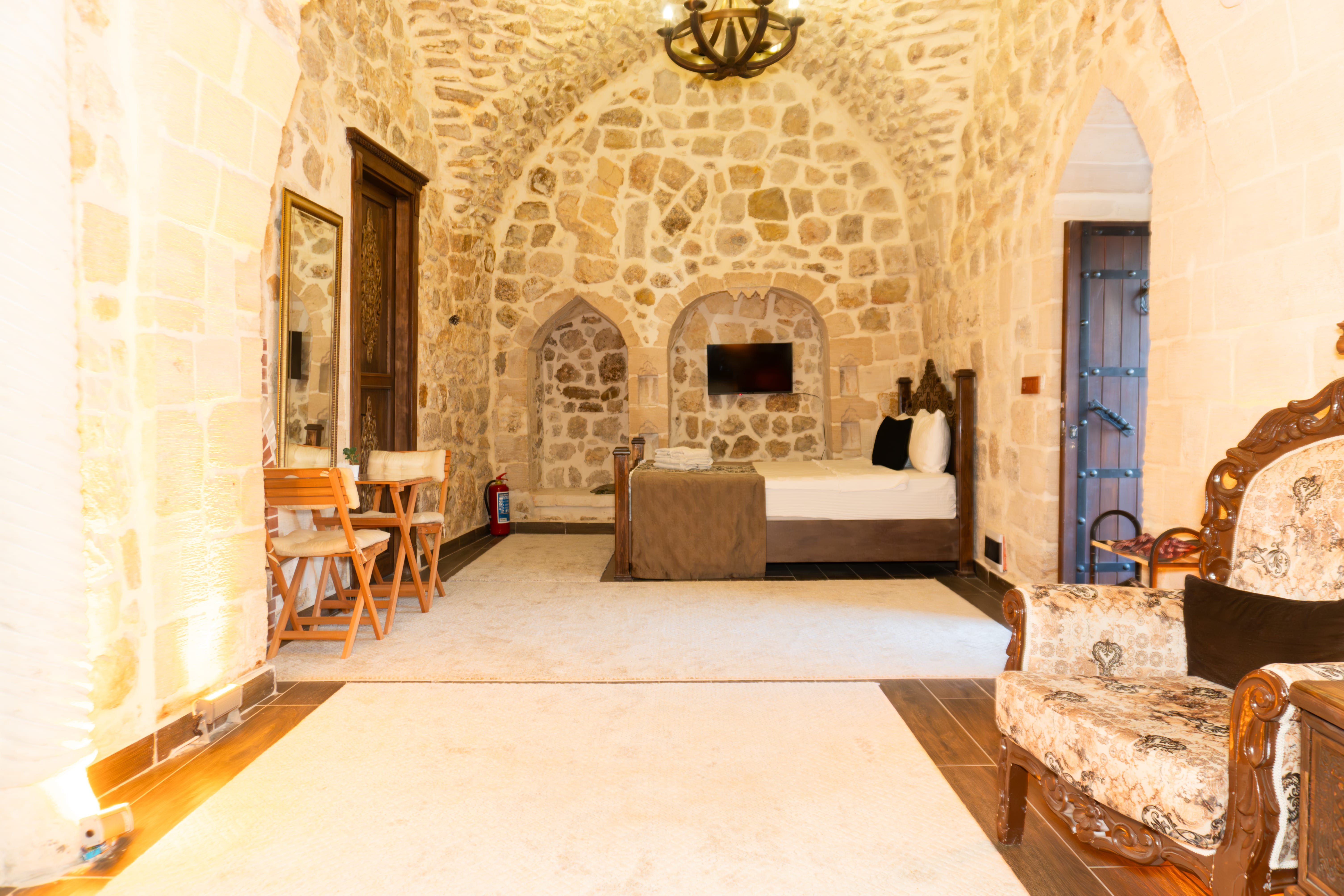 Hakanbey Konağı’nın en özel köşelerinden biridir. Yüksek tavanları, taş işçiliği ve geleneksel Mardin mimarisiyle ihtişamı yansıtırken; modern konfor unsurlarıyla misafirlerine unutulmaz bir konaklama imkânı tanır.